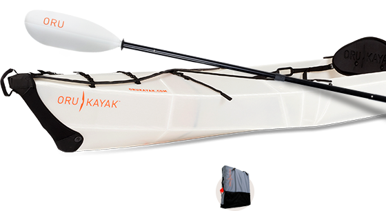A 12'1" origami open-cockpit kayak that folds down to the size of couch cushion. At 25 pounds, it's half the weight of a traditional kayak. It’s compact enough to store in your trunk, closet, boat, or garage. With the Oru Pack, you can even check it on a plane or hike into remote waters.
