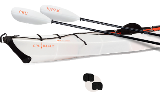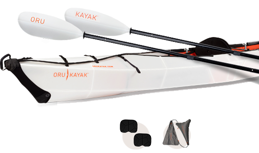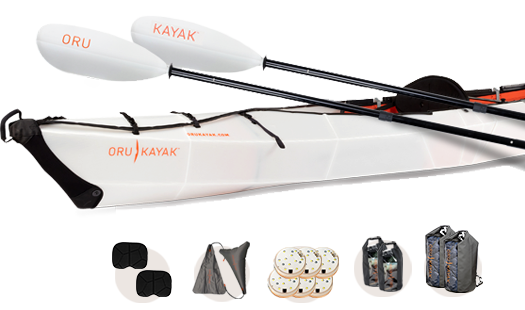 A 16'1" tandem kayak that folds down to a manageable box. At 41 pounds, this origami kayak is half the weight of a traditional double kayak. It’s compact enough to store in your closet and transport in your car.